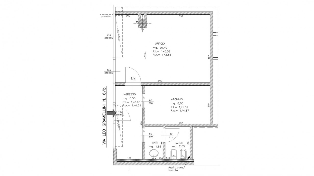 A Forlì nei pressi dell'ingresso all'autostrada, vendesi negozio di circa 50 mq compreso nel centro commerciale "San Giorgio". Il negozio è composto da un ingresso, l'ambiente principale organizzato come ufficio, un archivio, un bagno con relativo antibagno.